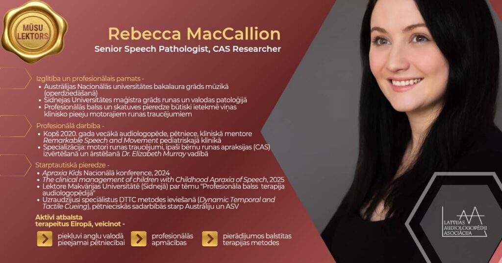 Drīzumā iepazīstināsim ar visu programmu, bet šobrīd iespējams jau iepazīties ar mūsu vieslektori no Austrālijas, kura šobrīd turpina darbu Berlīnē. Viņa uzstāsies ar apjomīgu programmu par bērnu apraksijām.